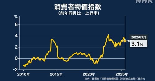 総務省が発表した7月の消費者物価指数(生鮮食品除く)は前年比+3.1%。 8か月連続で「3%台」と高止まりしています。 特に食料品の値上がりが深刻で、米類は+90.7%、チョコレート+51%、コーヒー…